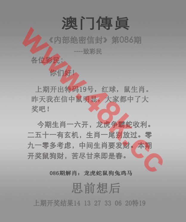 | 086期: ⑥肖 | 狗兔羊猪鼠龙 | ????中 |